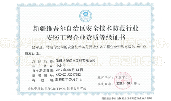新疆維吾爾自治區計算機信息系統集成企業證書